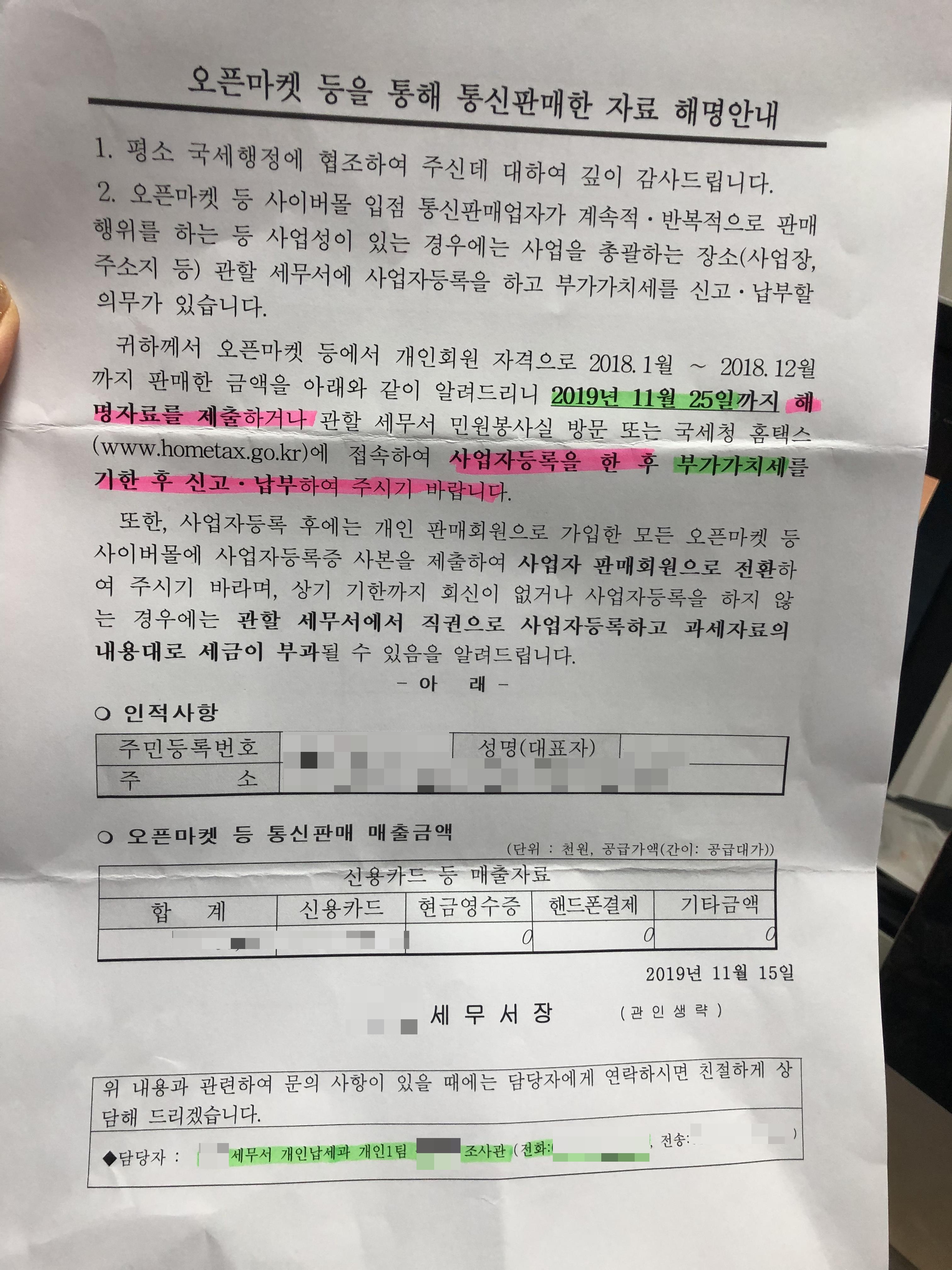 오픈마켓 등을 통해 통신판매한 자료 해명 안내