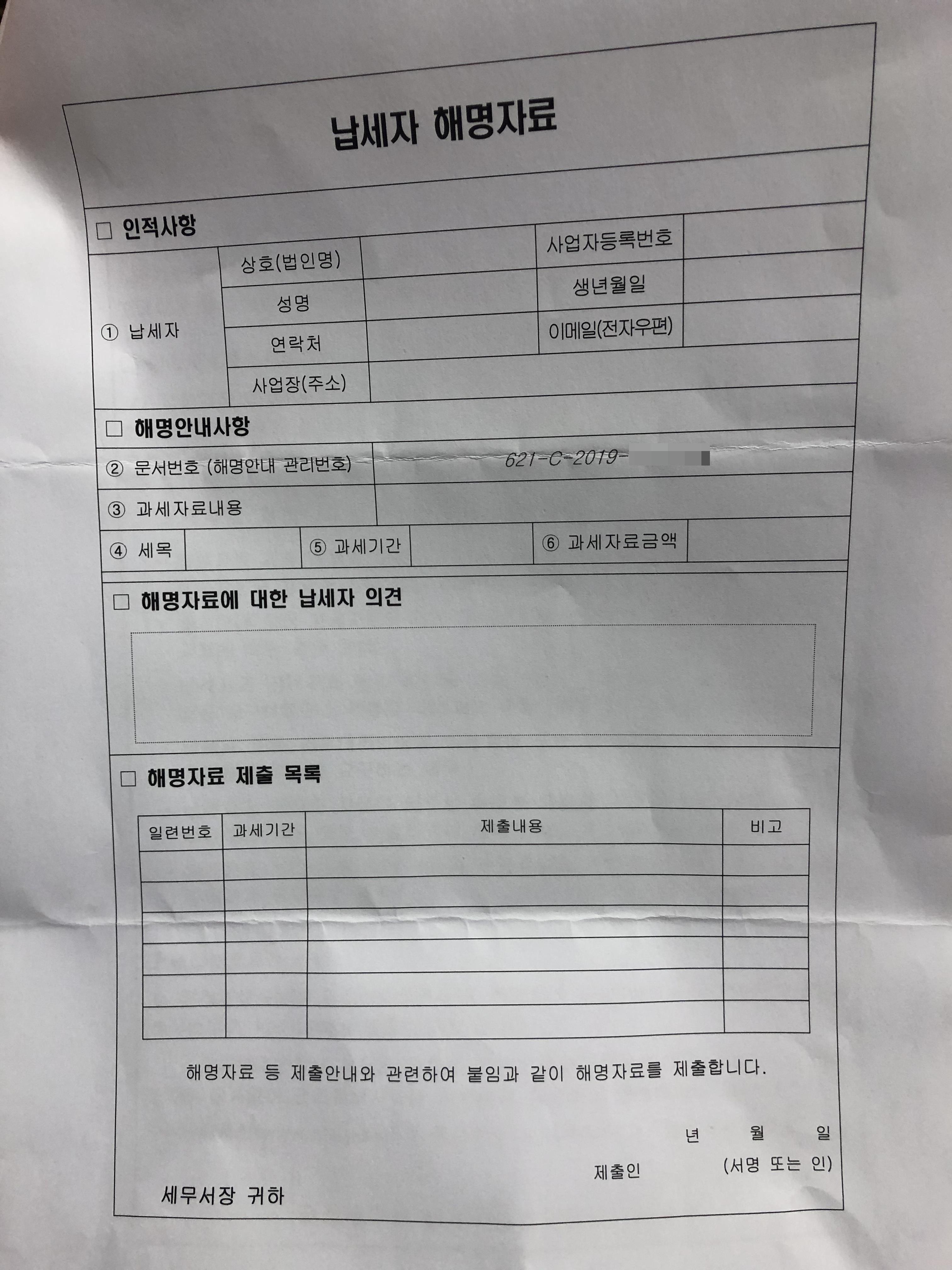 납세자 해명자료 제출 관련 문의하기 : <클릭>