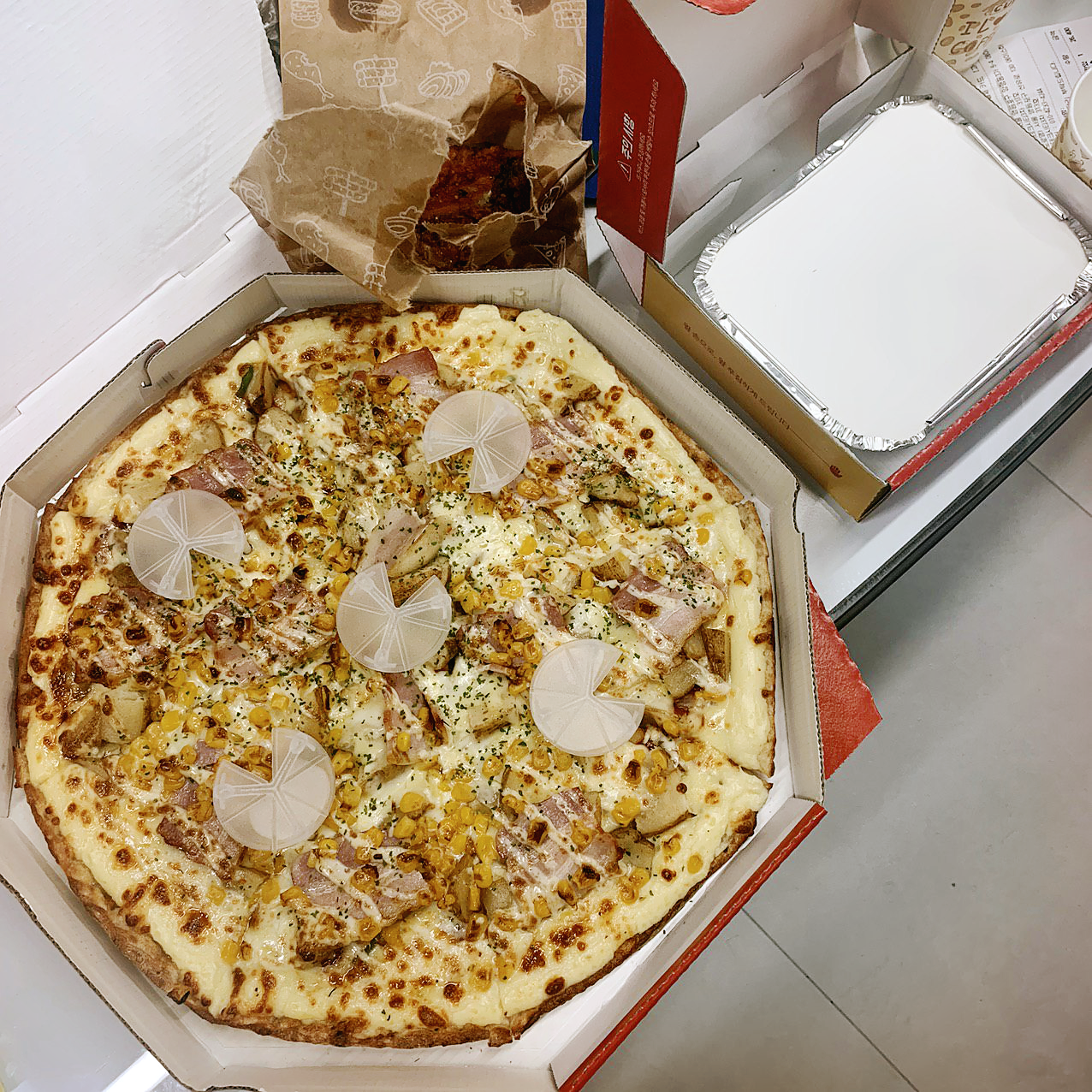베이컨왕손포테이토피자+치즈오븐스파게티+이벤트닭다리1