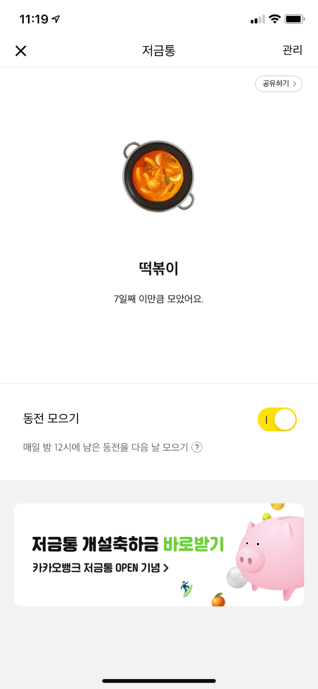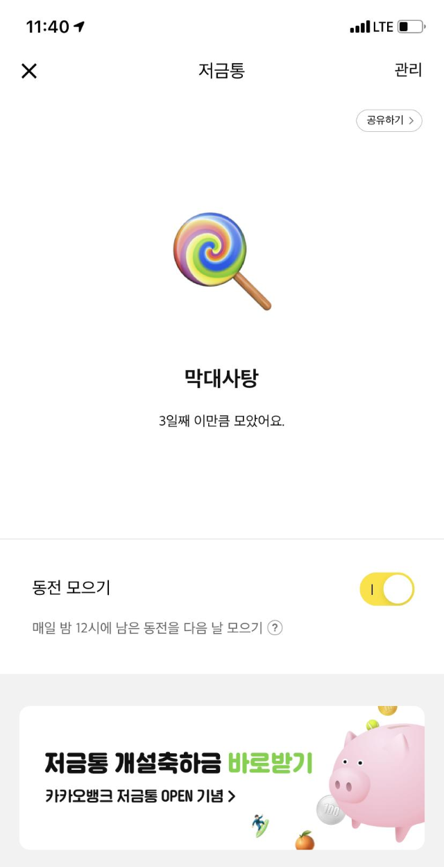 카카오뱅크 저금통 기능이 출시되어 써봄.
