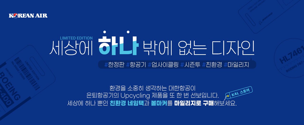 대한항공이 은퇴한 항공기를 활용해 친환경 마일리지 상품을 제작·출시한 것은 이번이 두 번째로 지난 1월 보잉 777 항공기의 폐 자재로 네임택을 출시해 큰 인기를 끈 바 있다.