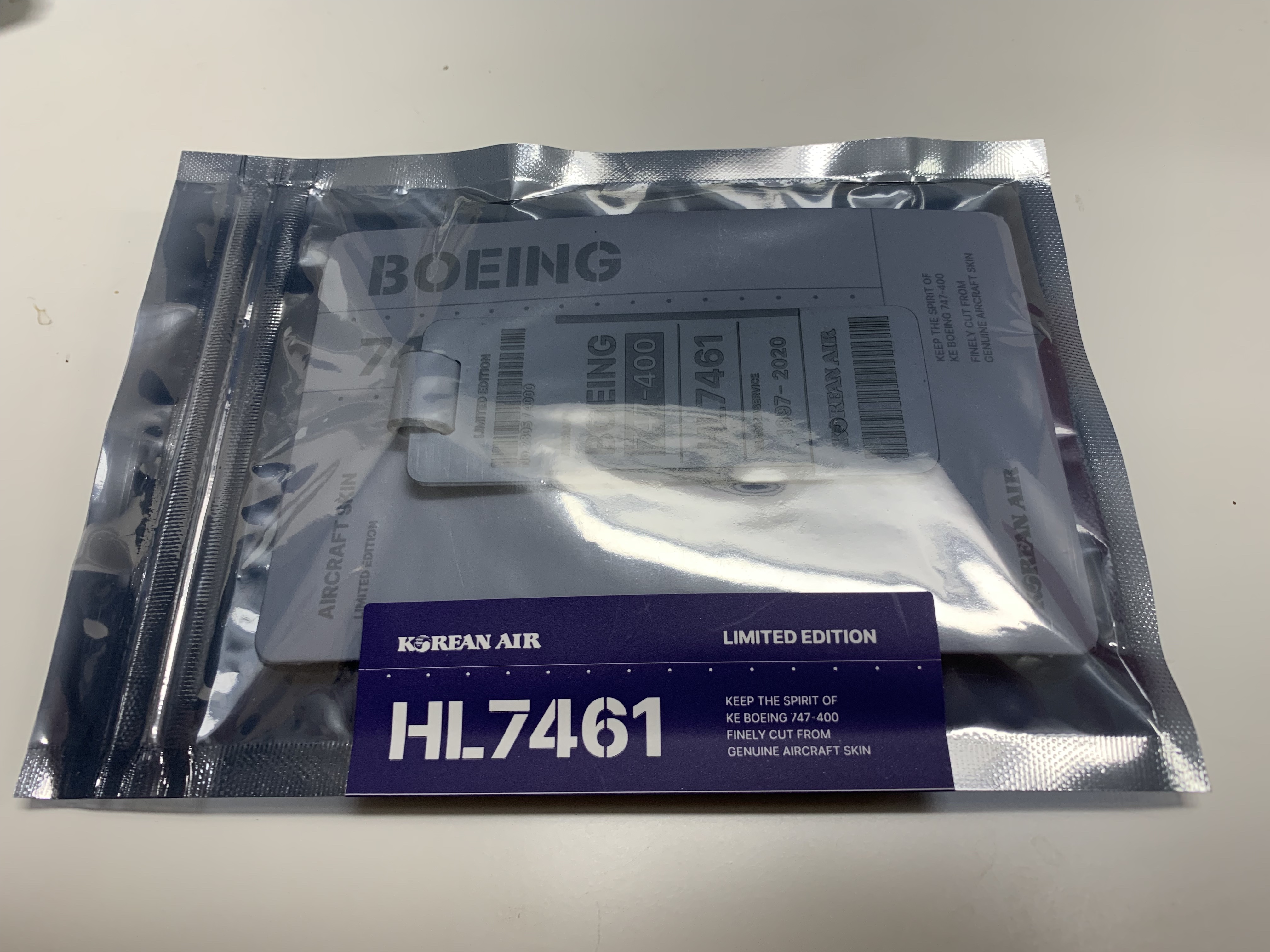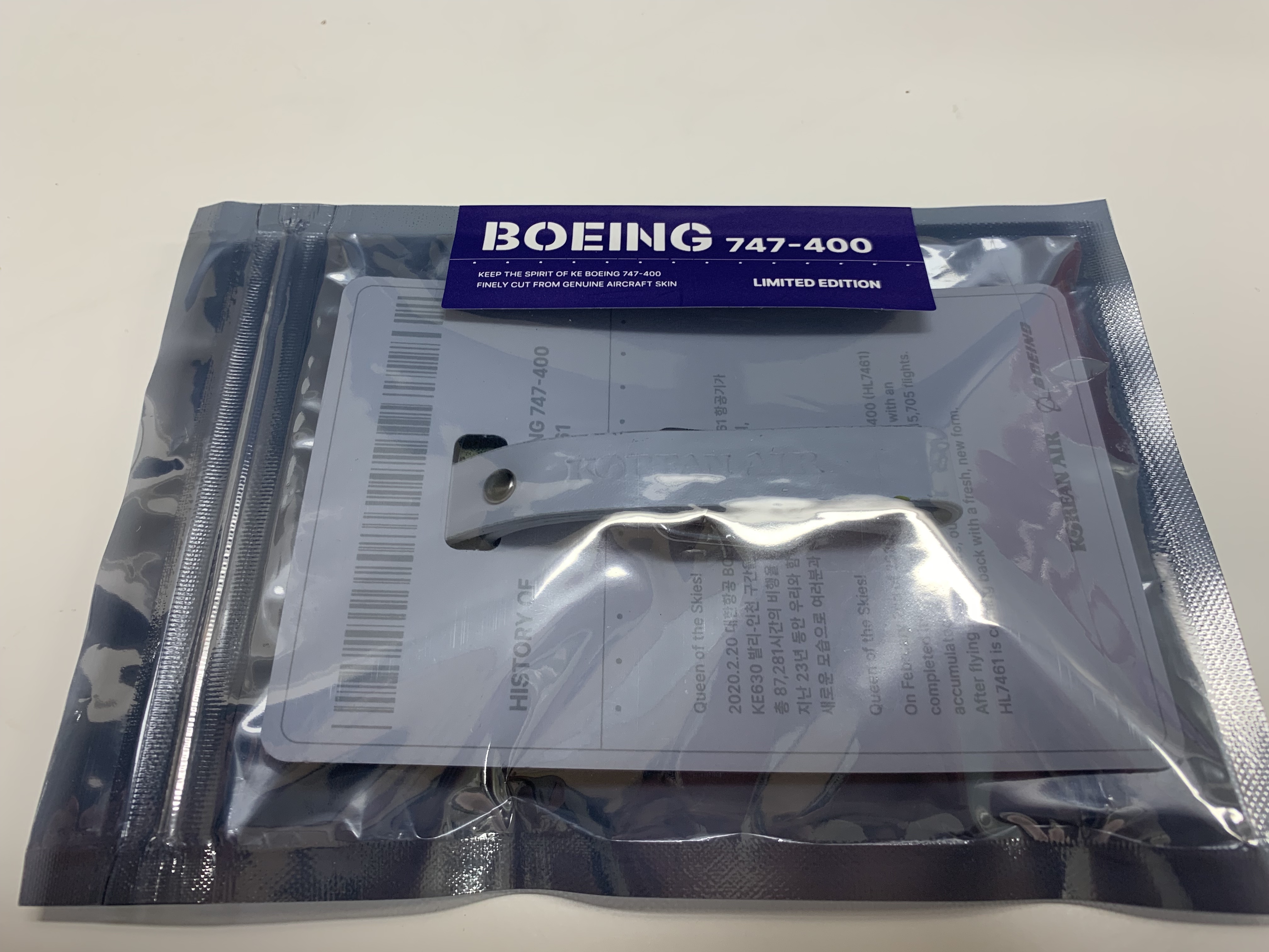 대한항공 보잉 747-400 마지막 여객기의 추억을 담은 네임택과 볼마커는 항공기 동체 표면을 잘라내어 제작됐으며, 사용된 동체 부분에 따라 색상과 디자인이 각기 다르다. 두 제품에는 ‘B747-400’ 레터링과 함께 항공기 일련번호인 HL7461가 새겨져 있으며, 고유번호가 각인되어 있어 희소 가치를 더한다.