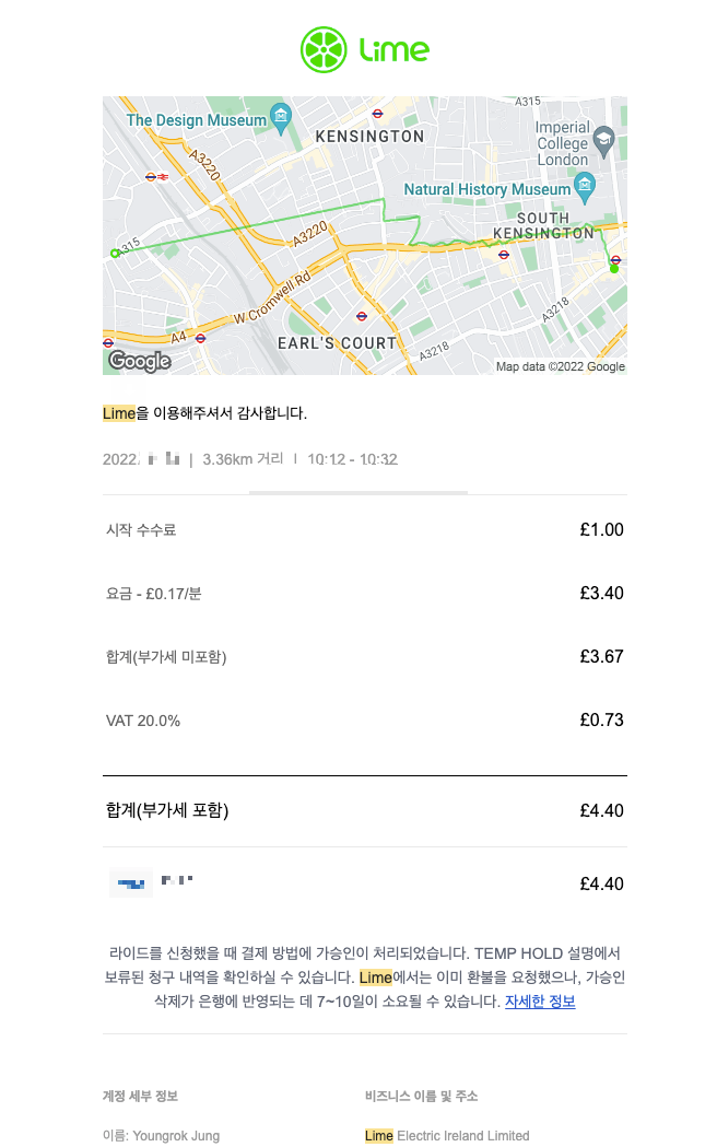 런던의 라임은 자전거와 킥보드가 있었으나, 자전거는 시도 안해봄. 설마 자전거도 면허증 인증을 하라고 했으려나?