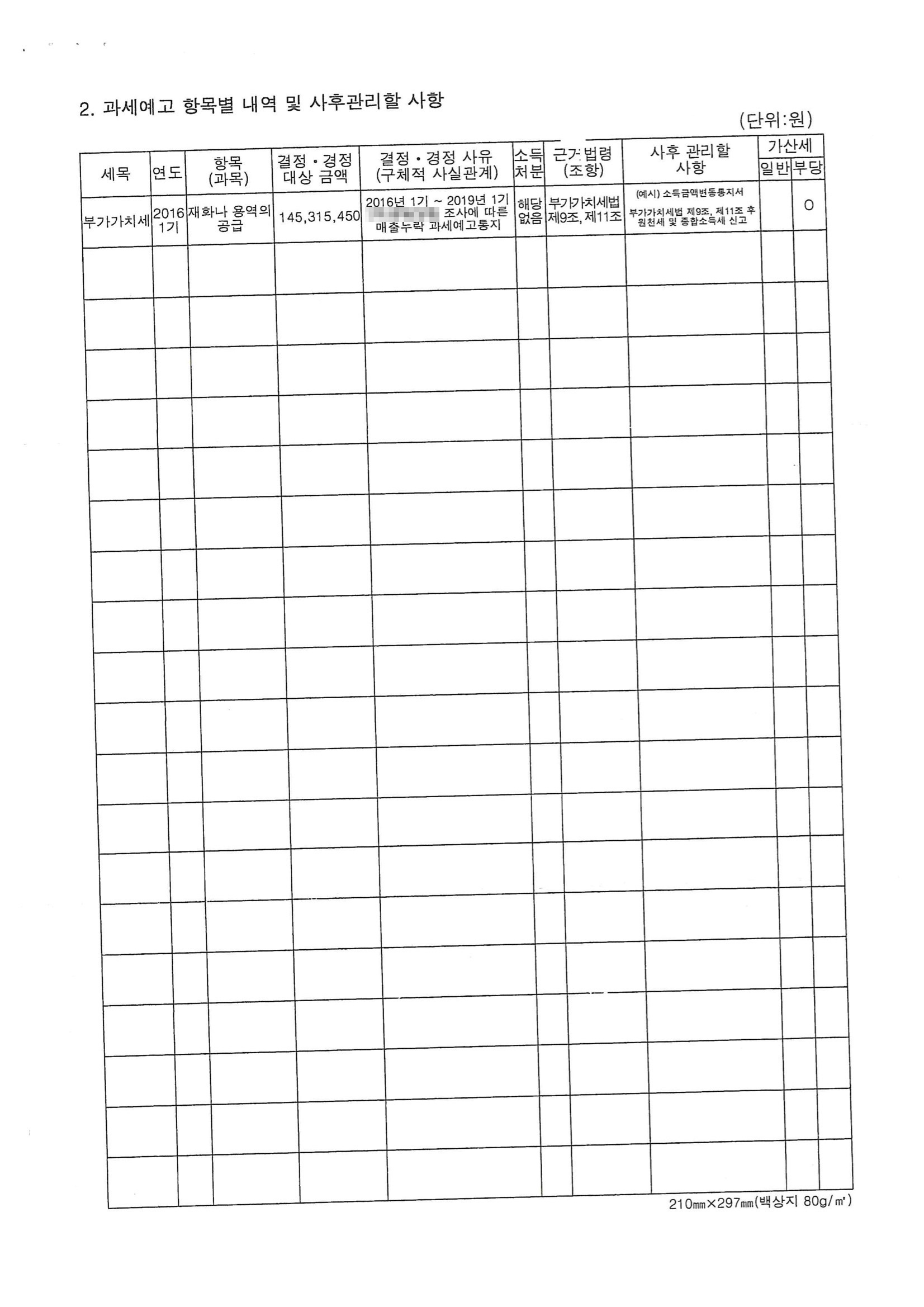 별다른 얘기 없이 담당 세무대리인이 그냥 좀 더 지켜보자고 하셨다고 함.