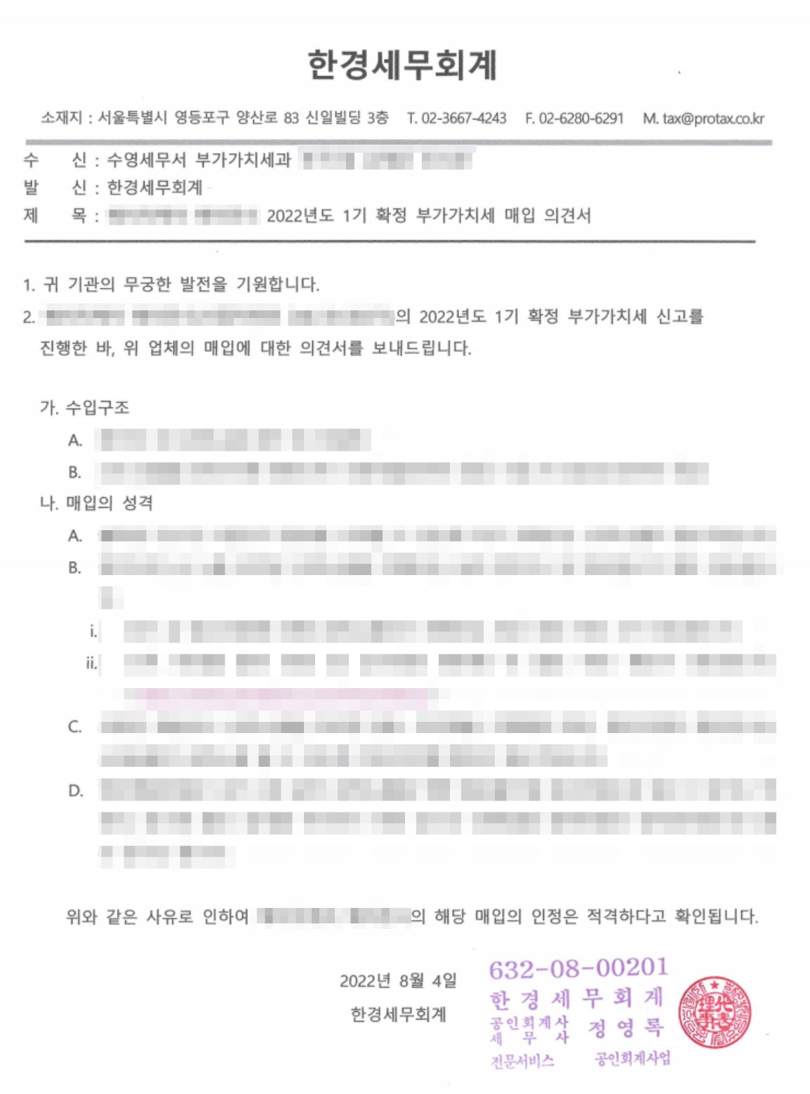 부산이라 방문하기도 어려웠는데, 의견서 및 사유서가 좋은 반응을 얻어 업무가 가능하게 됨.