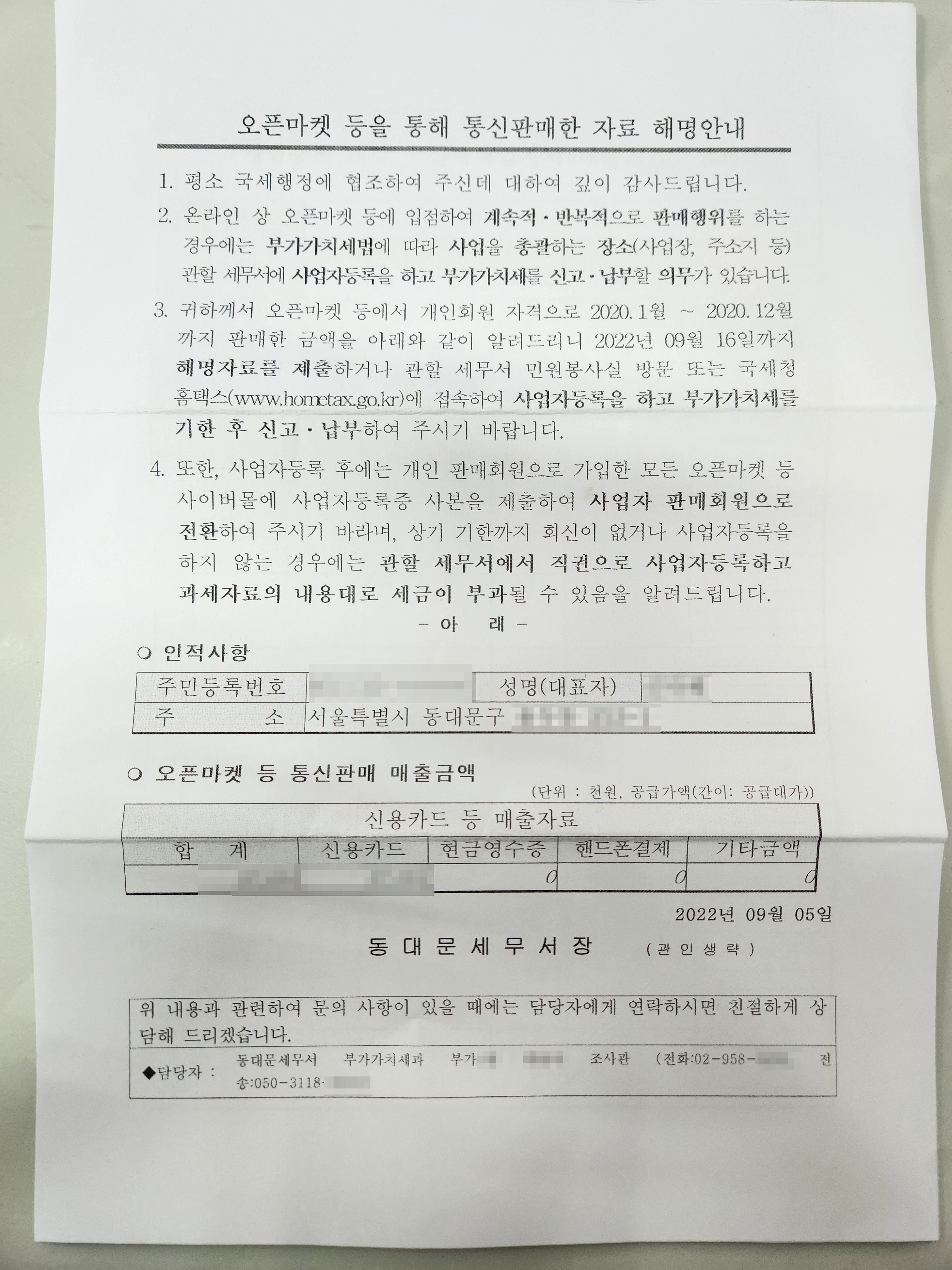 연간 거래금액이 4800만원을 넘는다면 국세청 전산에서 확인 대상자로 분류되어 자동으로 우편물을 보내는게 아닐까 싶은 정도.
