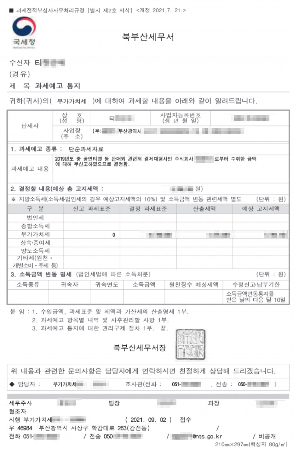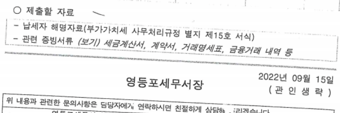 | 직업소개소 인력공급업 알선중개업 부가가치세 해명자료제출안내 및 과세예고통지 (과세전적부심사) (3) | 2022.11.05 |