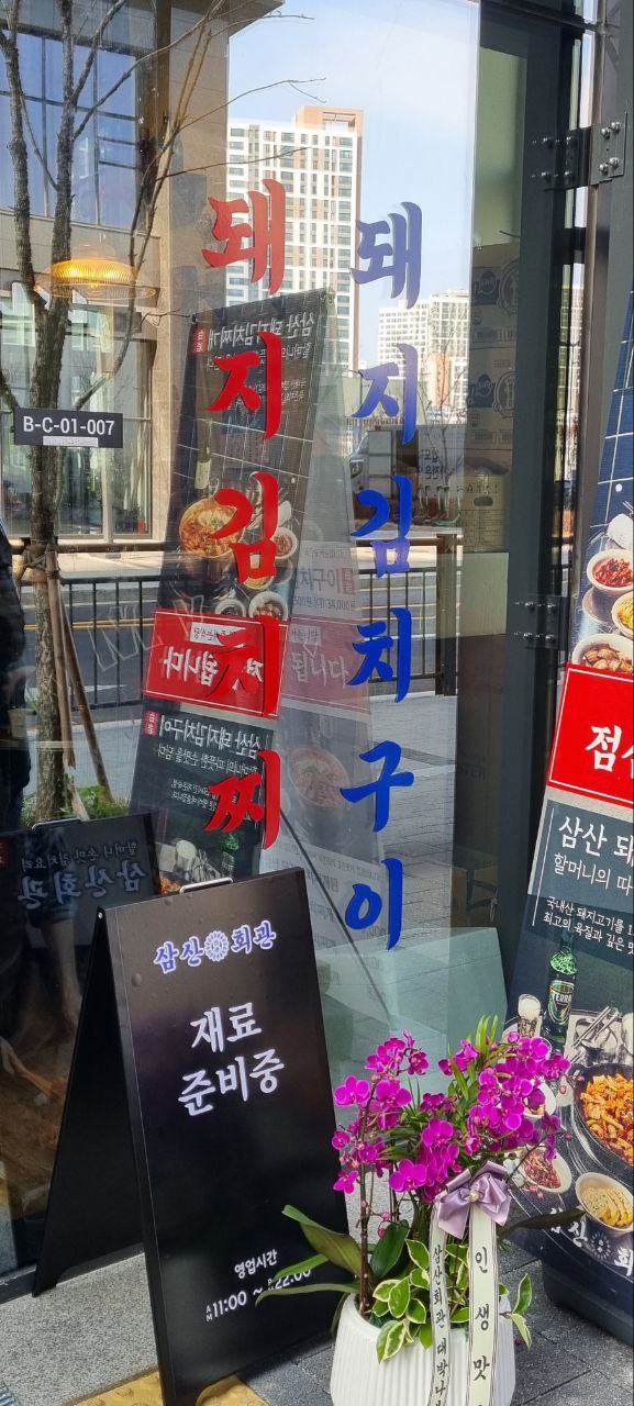 연구실 옆 신장개업한 돼지김치구이, 돼지김치찌개 전문점 삼산회관.