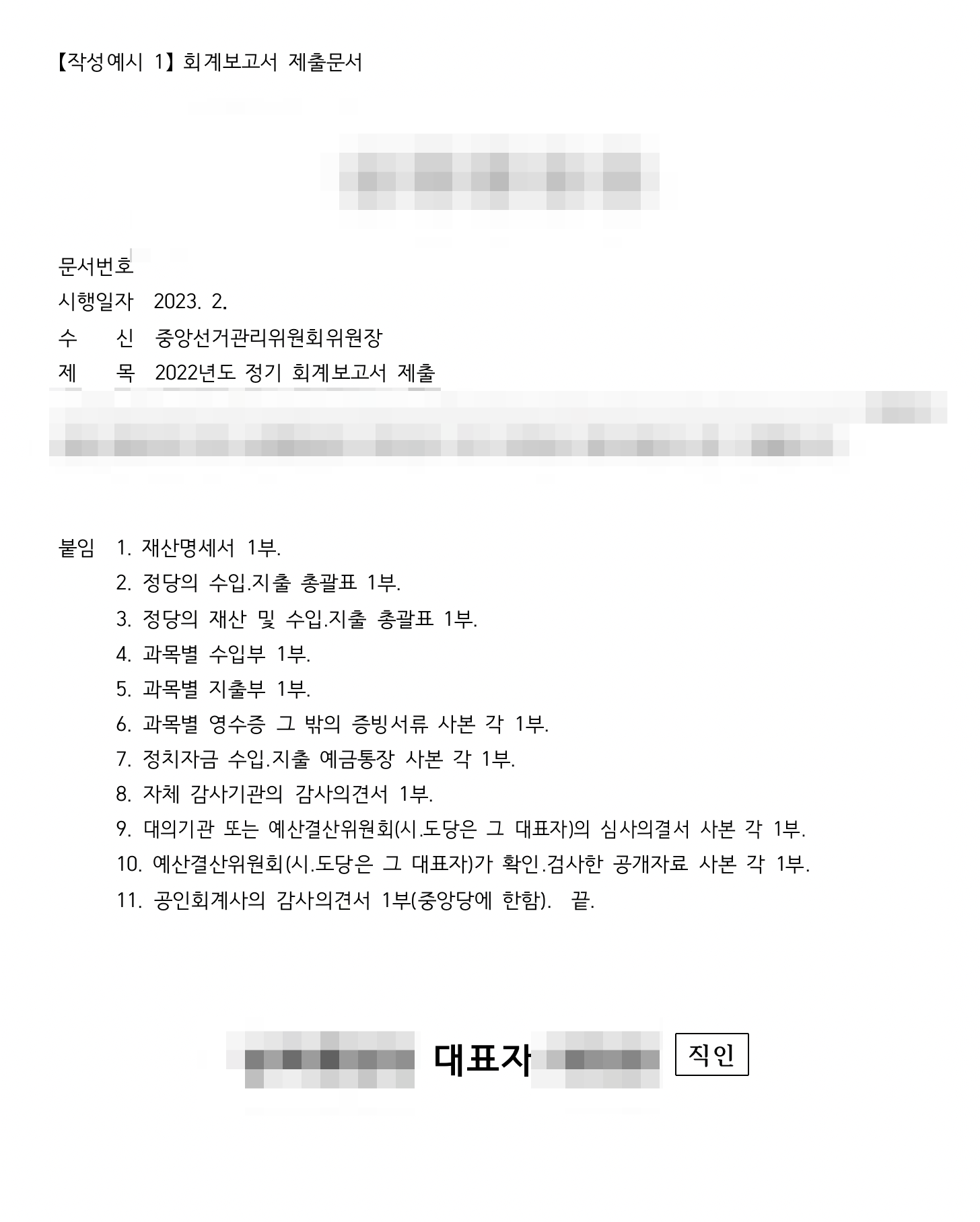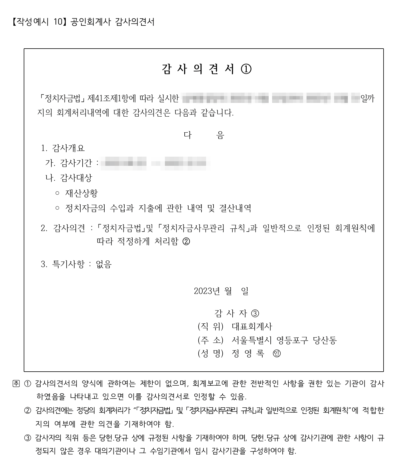 모든 확인이 끝났다면... 정치자금법에 의한 공인회계사 감사의견서 작성