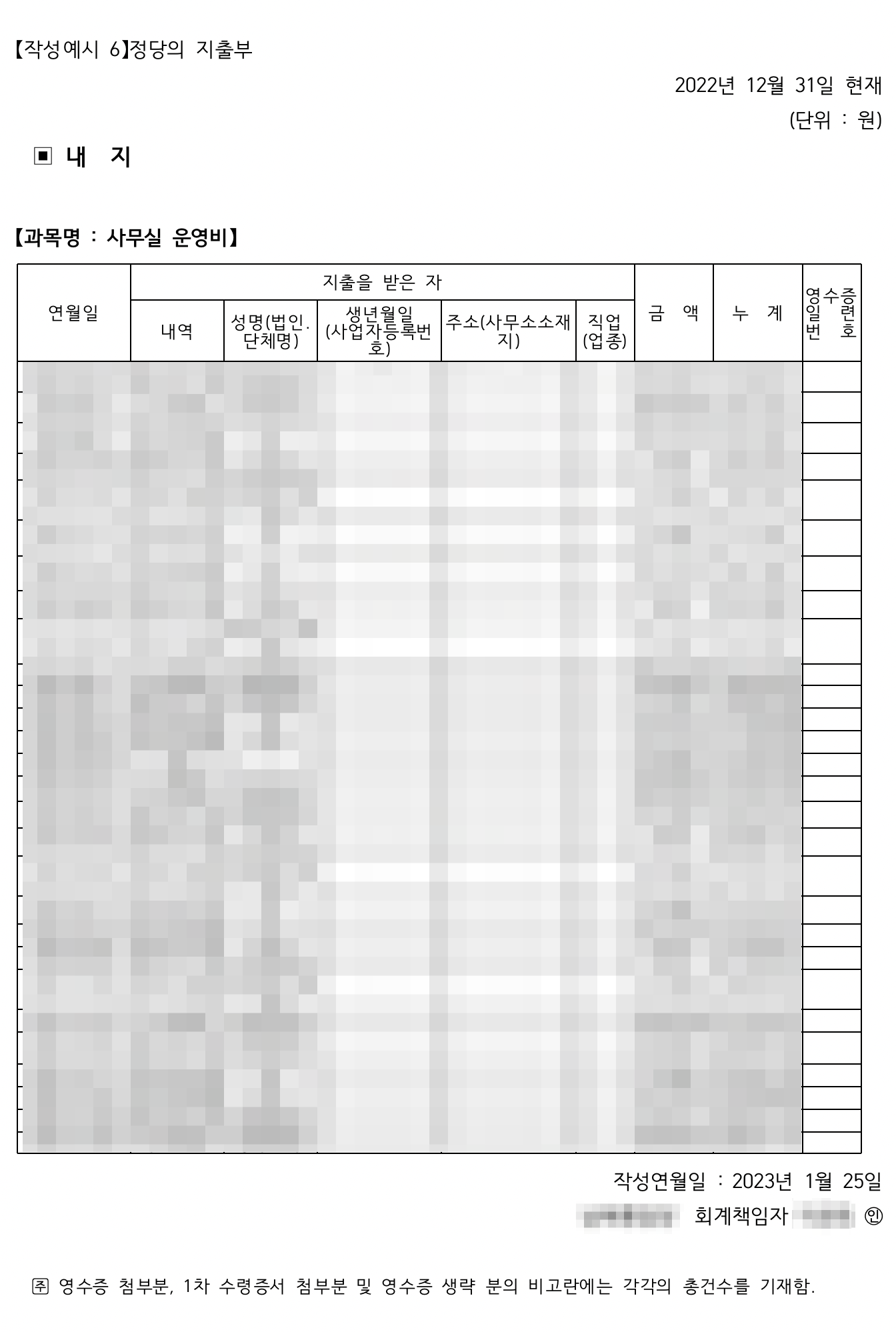 다. 회계장부의 비치 및 기재, 영수증 그 밖의 증빙자료 구비, 회계보고 종료 후 선임권자에게 회계장부등 인계