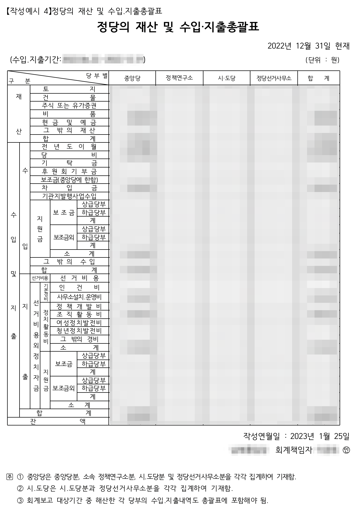 나. 회계보고(정기 회계보고, 선거참여 및 정당 등록취소․해산에 따른 수시 회계보고)