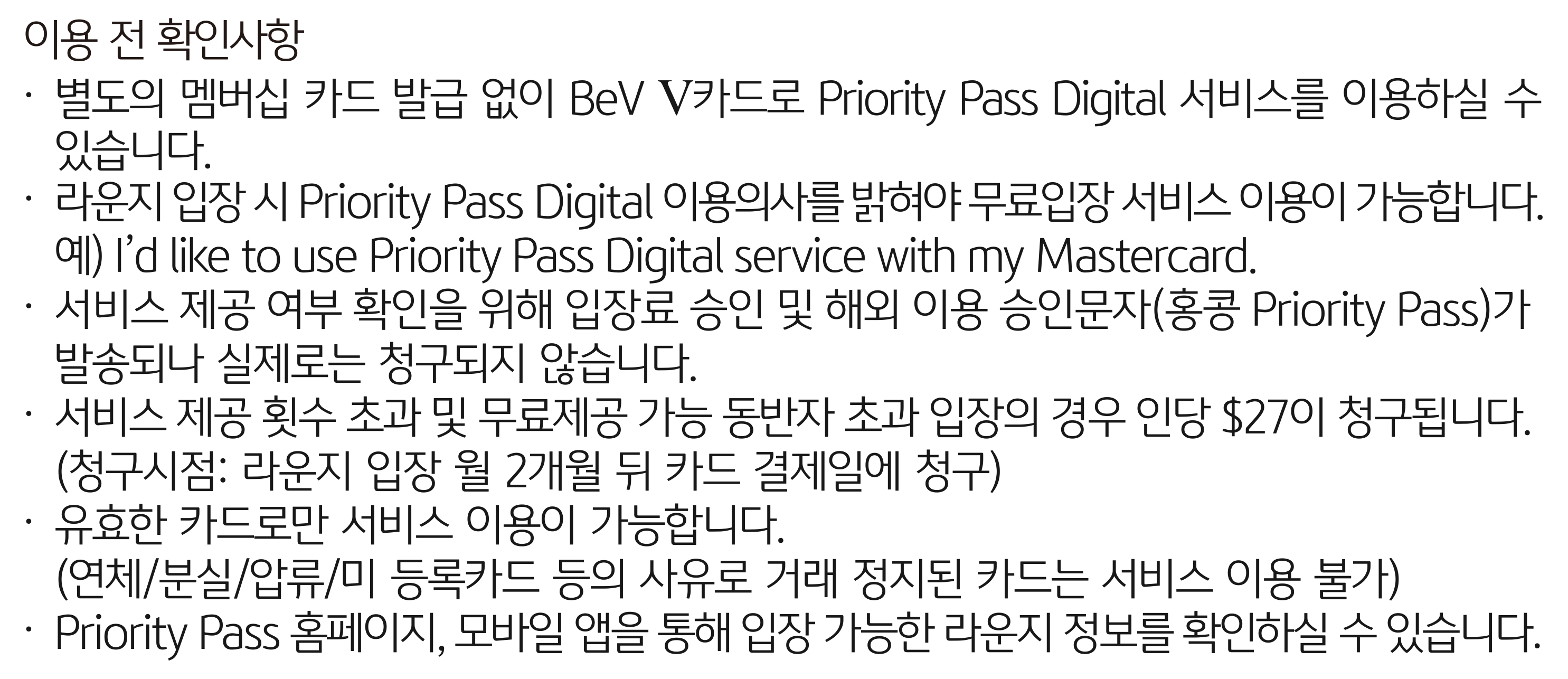 KB 국민 베브 5 (BEV V) 마스터카드 월드 등급의 라운지키 (Lounge KEY) 서비스가 PPD (디지털PP, Priority Pass Digital) 로 변경됨.